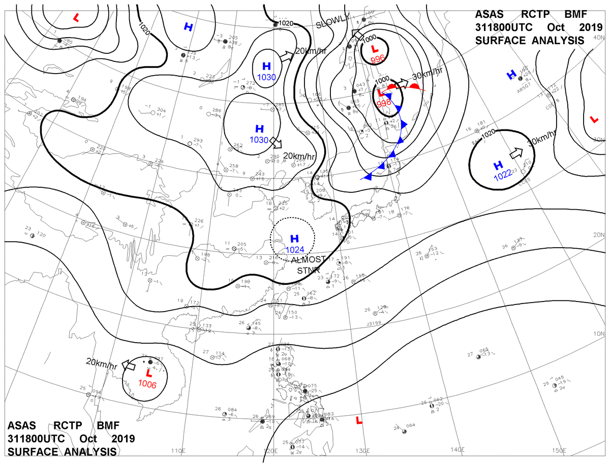 2019/10/31 18z sfcmap 天氣圖