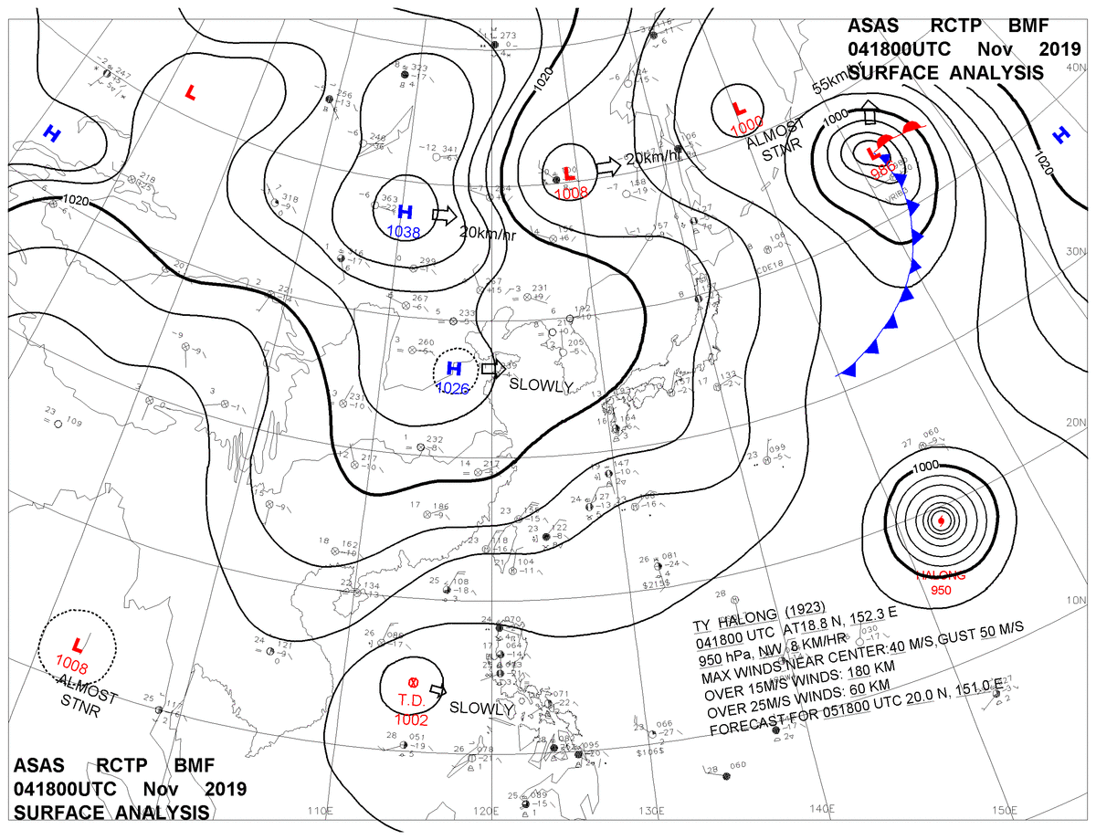 2019/11/04 18z sfcmap 天氣圖
