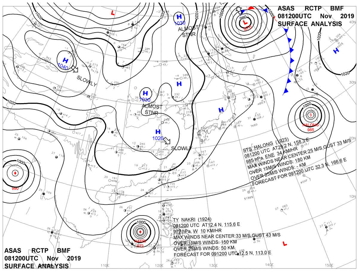 2019/11/08 12z sfcmap 天氣圖