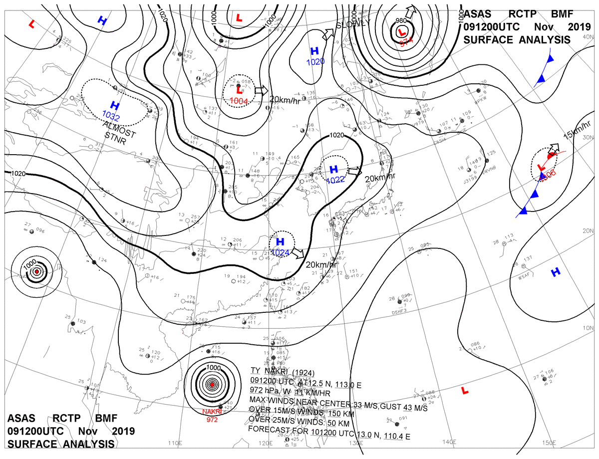 2019/11/09 12z sfcmap 天氣圖