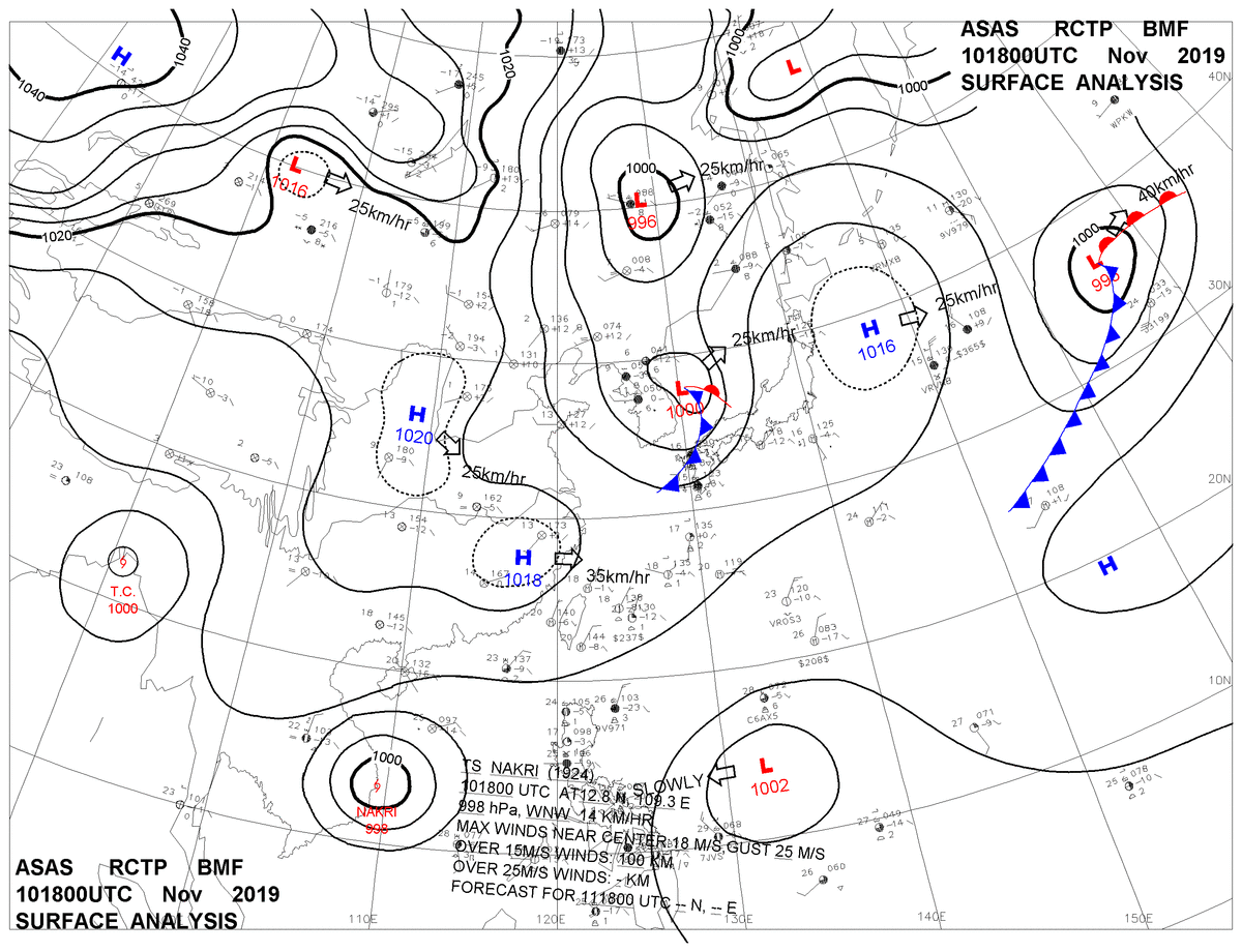 2019/11/10 18z sfcmap 天氣圖