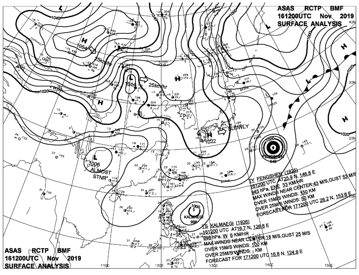 2019/11/16 12z sfcmap 天氣圖