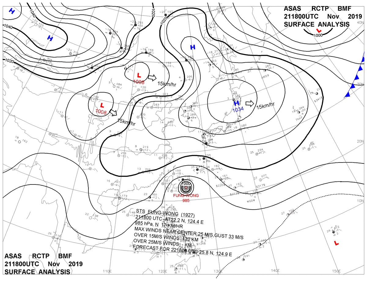 2019/11/21 18z sfcmap 天氣圖