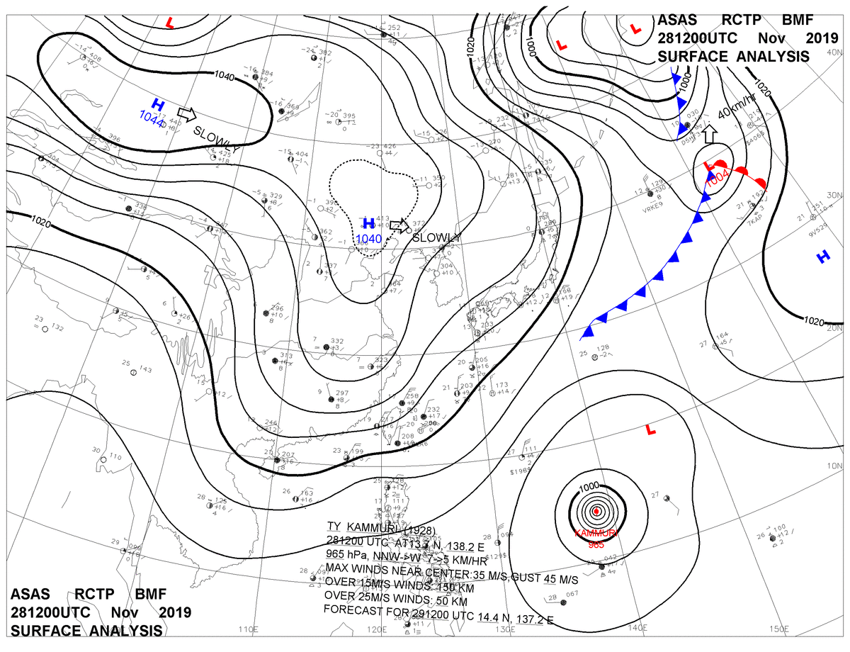 2019/11/28 12z sfcmap 天氣圖