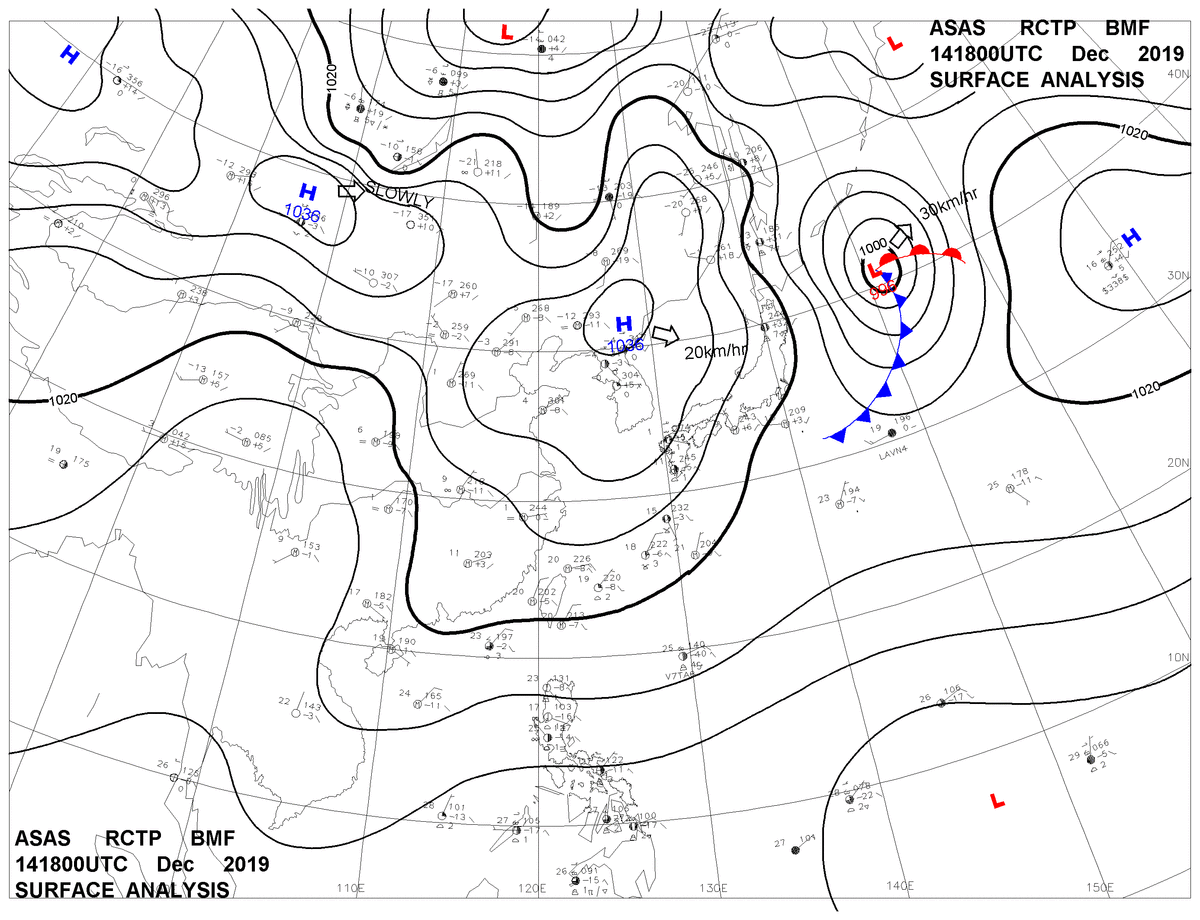 2019/12/14 18z sfcmap 天氣圖