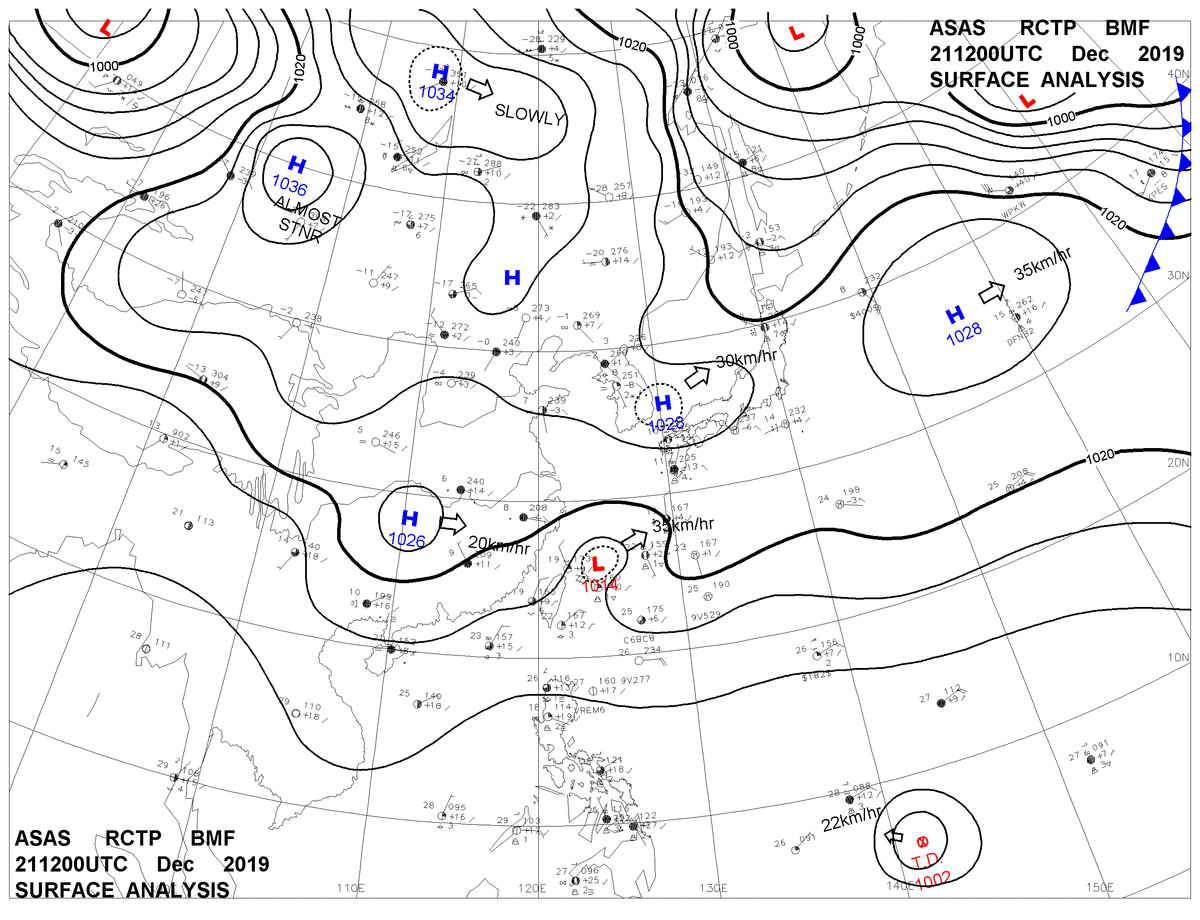 2019/12/21 12z sfcmap 天氣圖