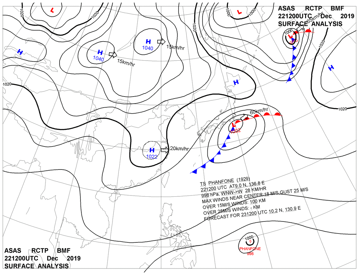 2019/12/22 12z sfcmap 天氣圖