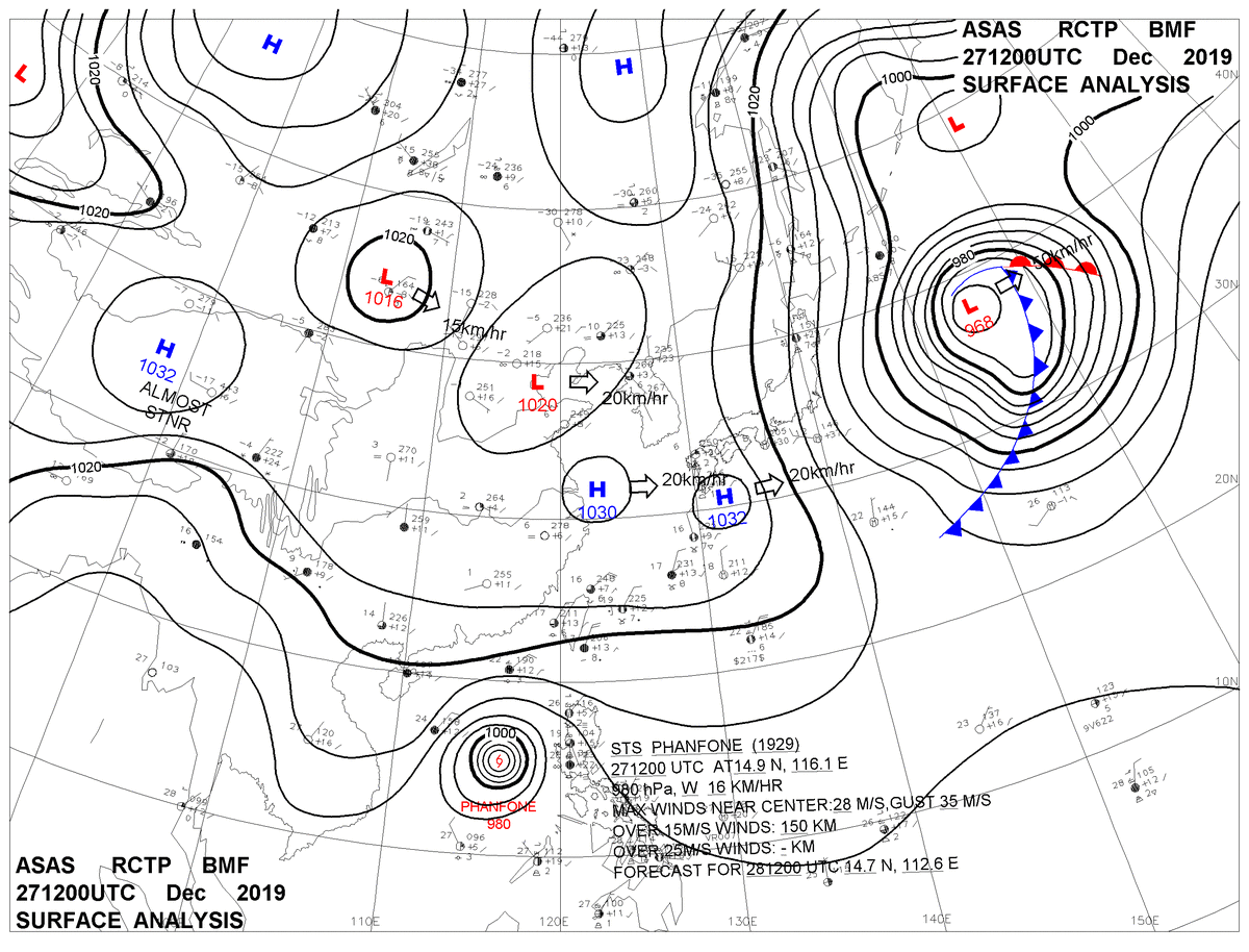 2019/12/27 12z sfcmap 天氣圖