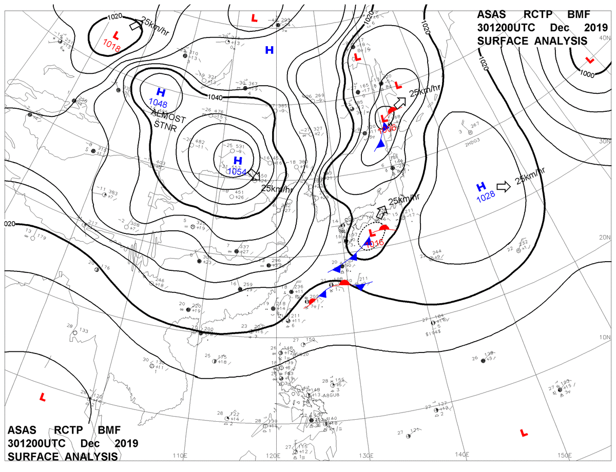 2019/12/30 12z sfcmap 天氣圖