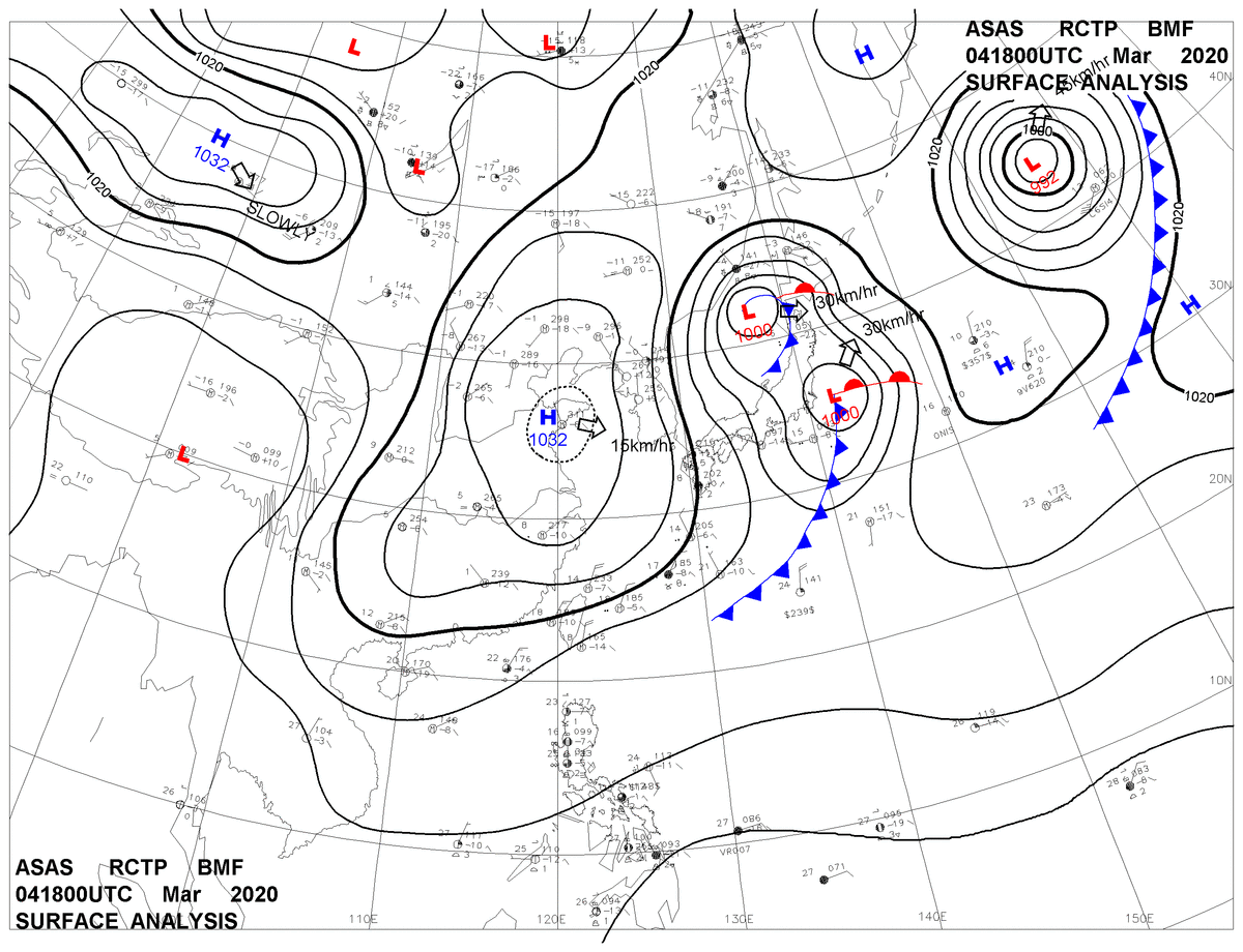 2020/03/04 18z sfcmap 天氣圖