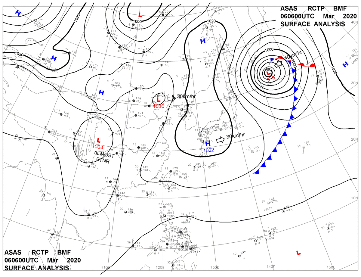 2020/03/06 06z sfcmap 天氣圖