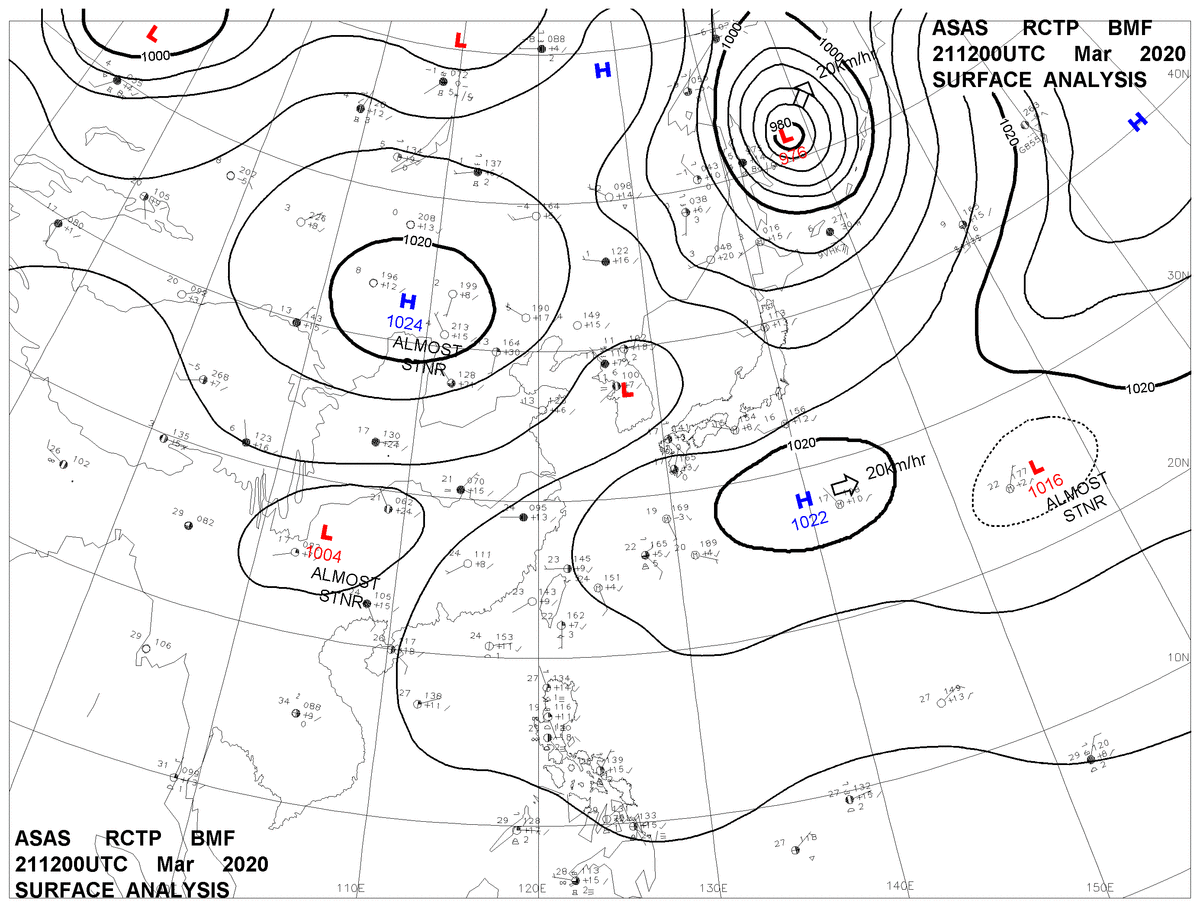 2020/03/21 12z sfcmap 天氣圖