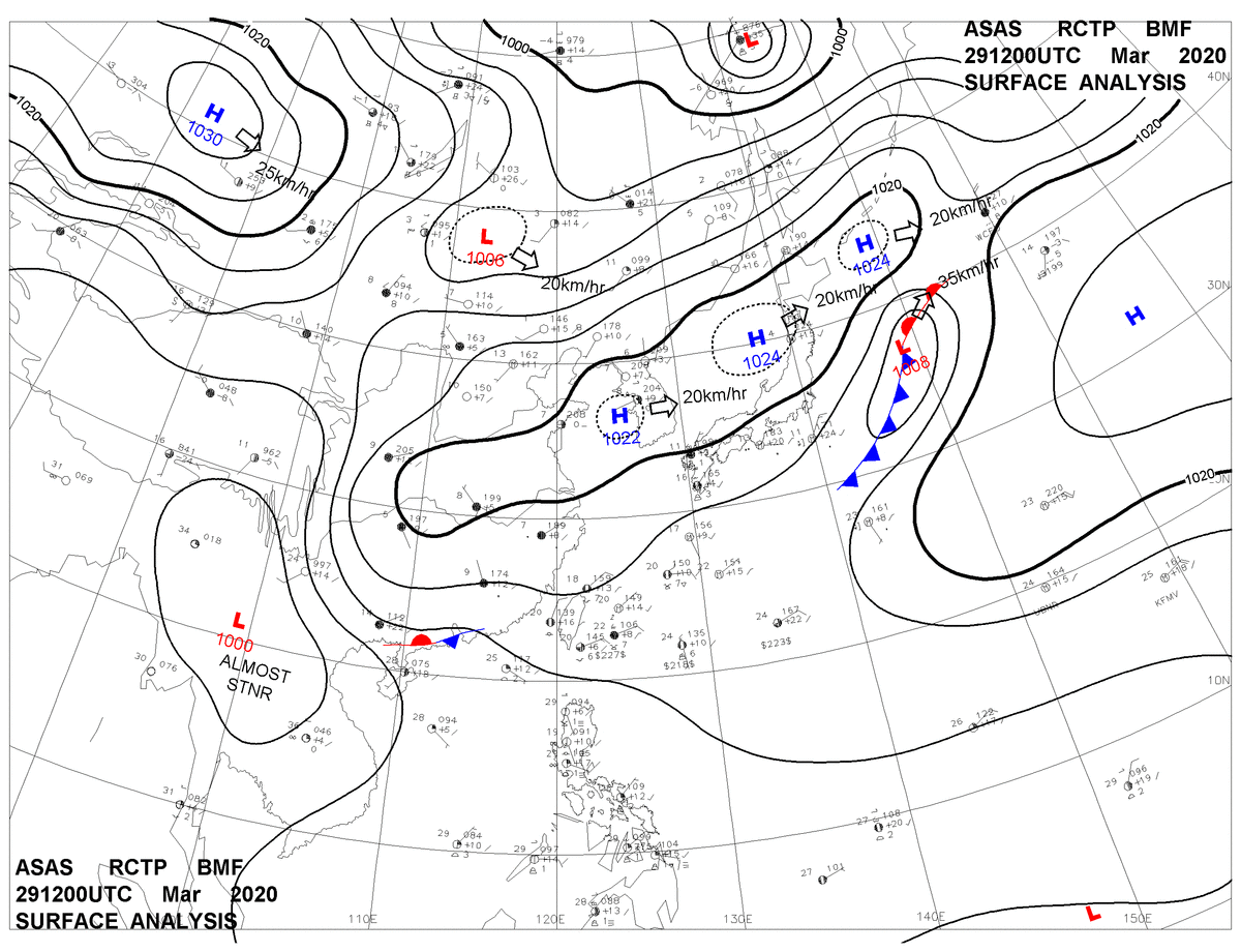 2020/03/29 12z sfcmap 天氣圖