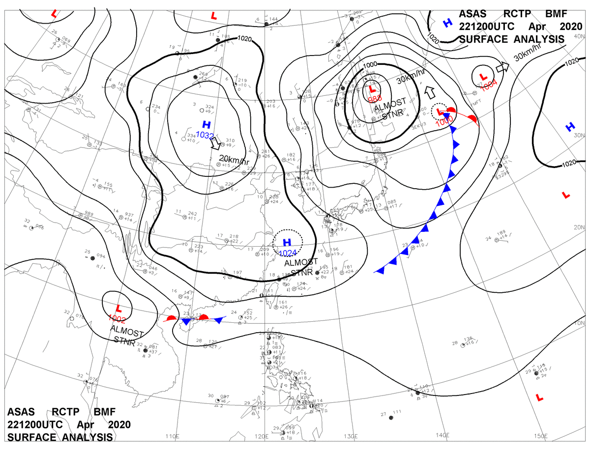2020/04/22 12z sfcmap 天氣圖