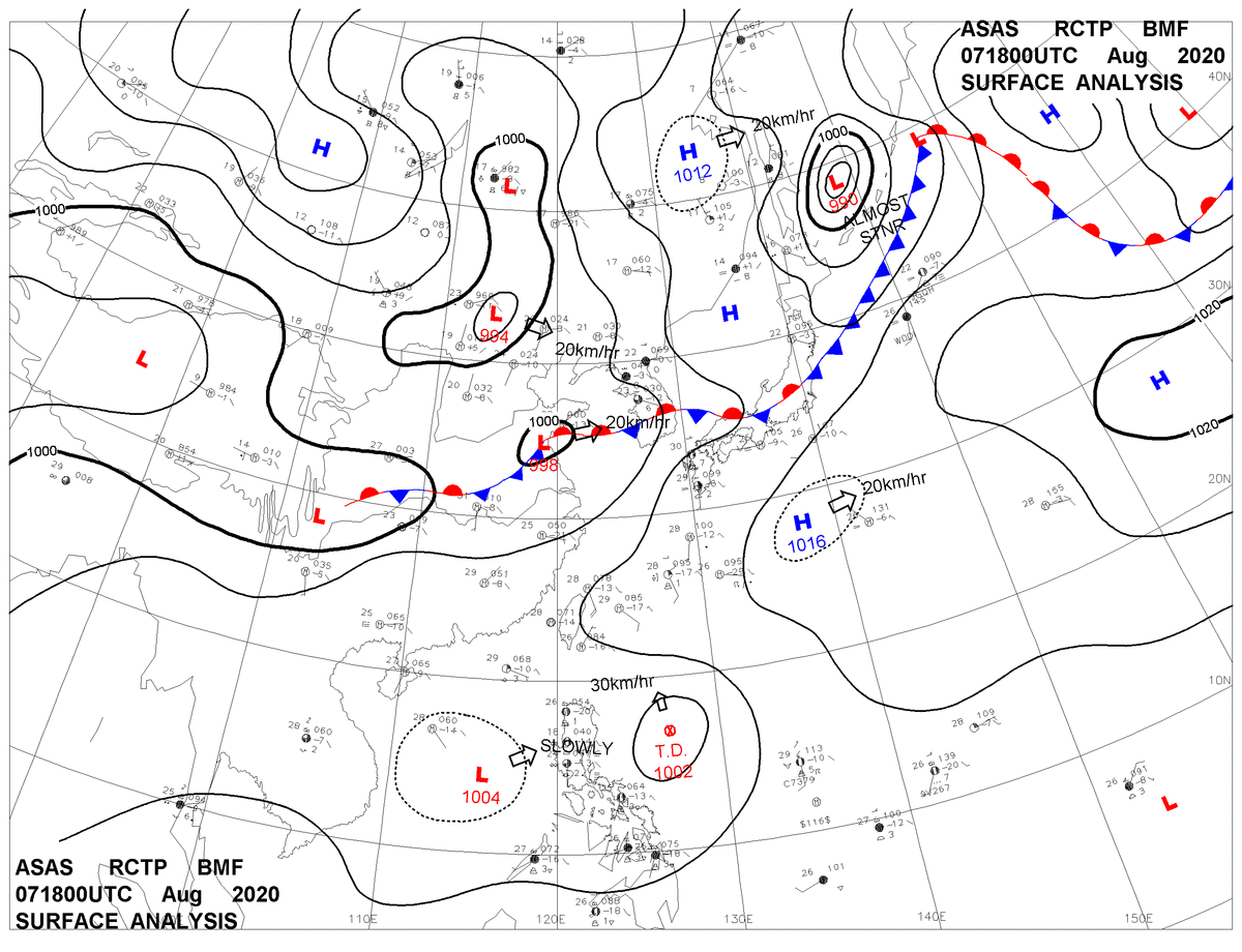 2020/08/07 18z sfcmap 天氣圖