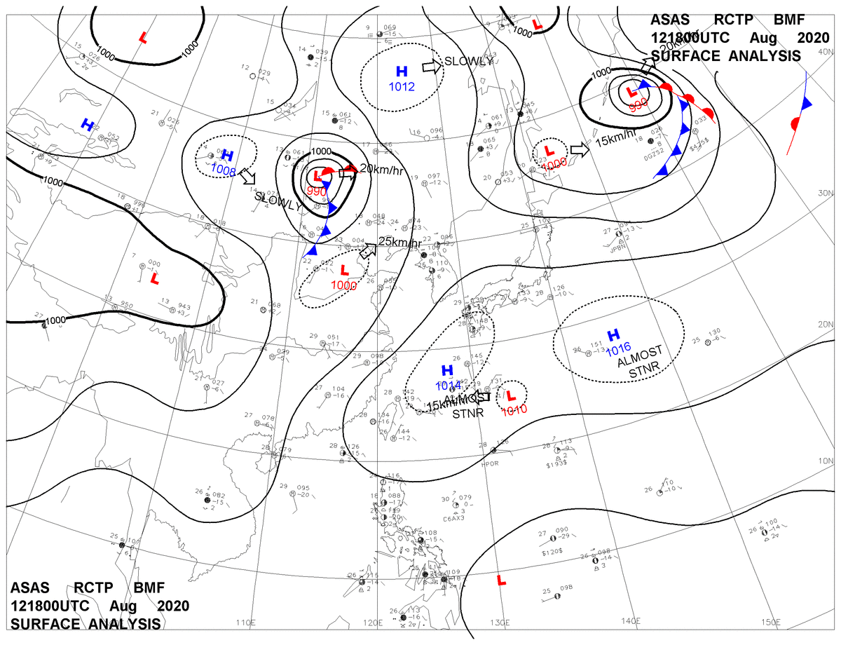 2020/08/12 18z sfcmap 天氣圖