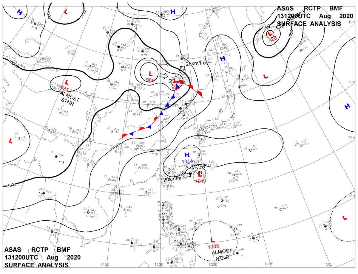 2020/08/13 12z sfcmap 天氣圖