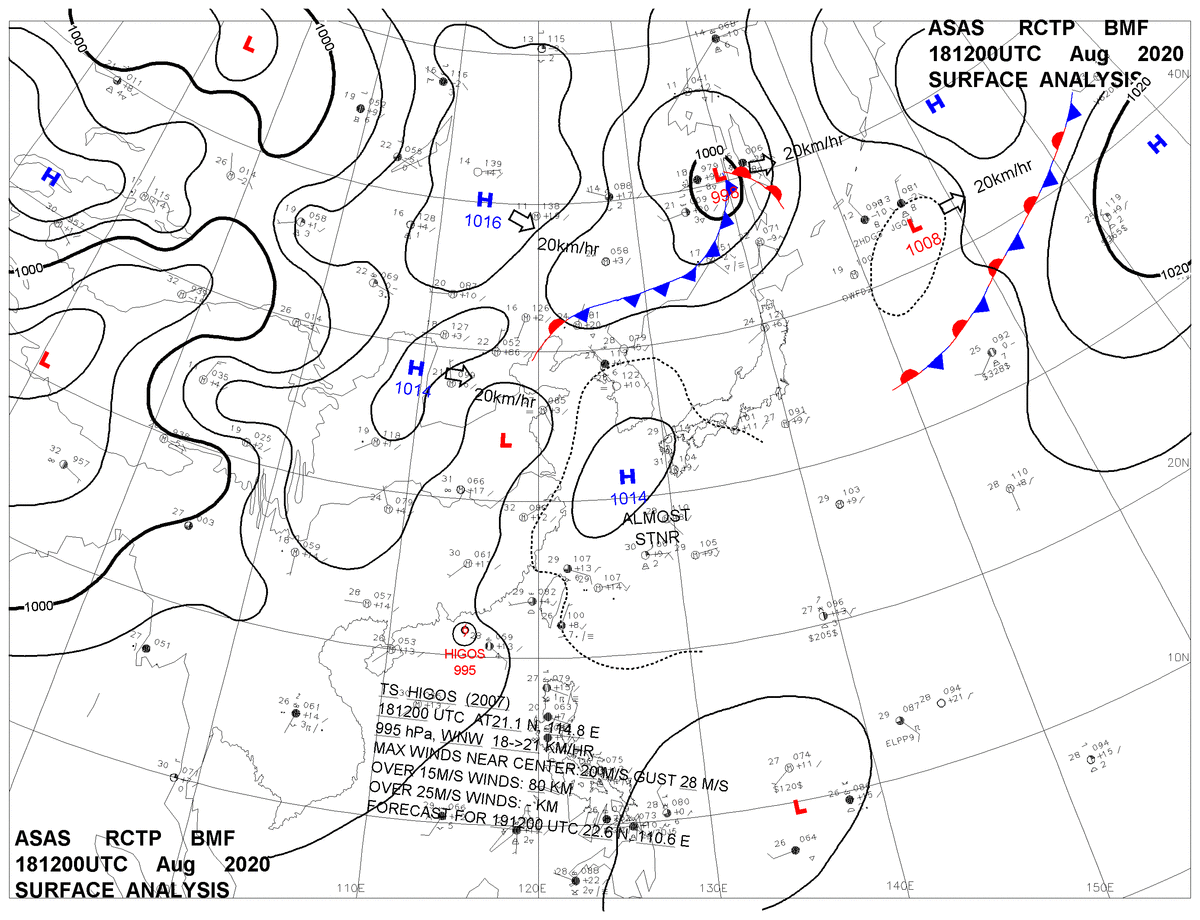 2020/08/18 12z sfcmap 天氣圖