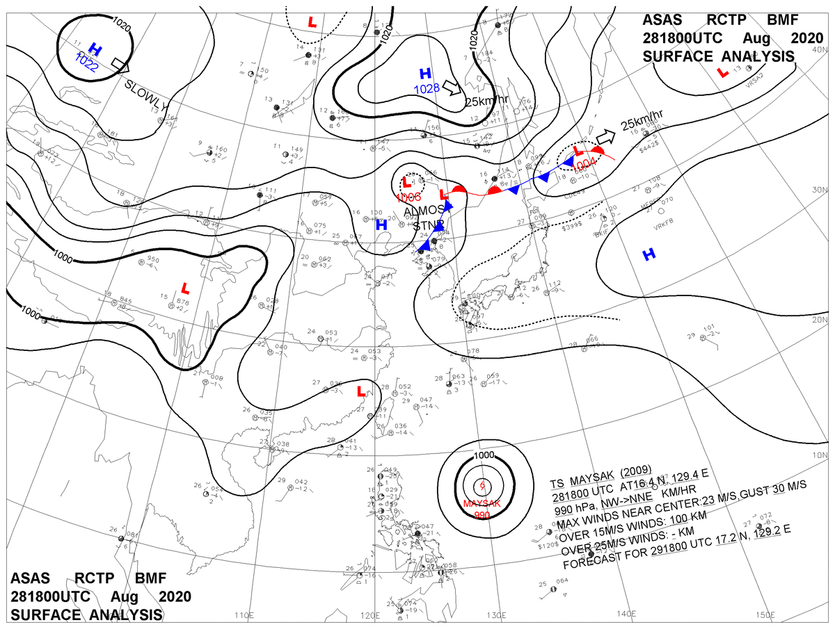 2020/08/28 18z sfcmap 天氣圖