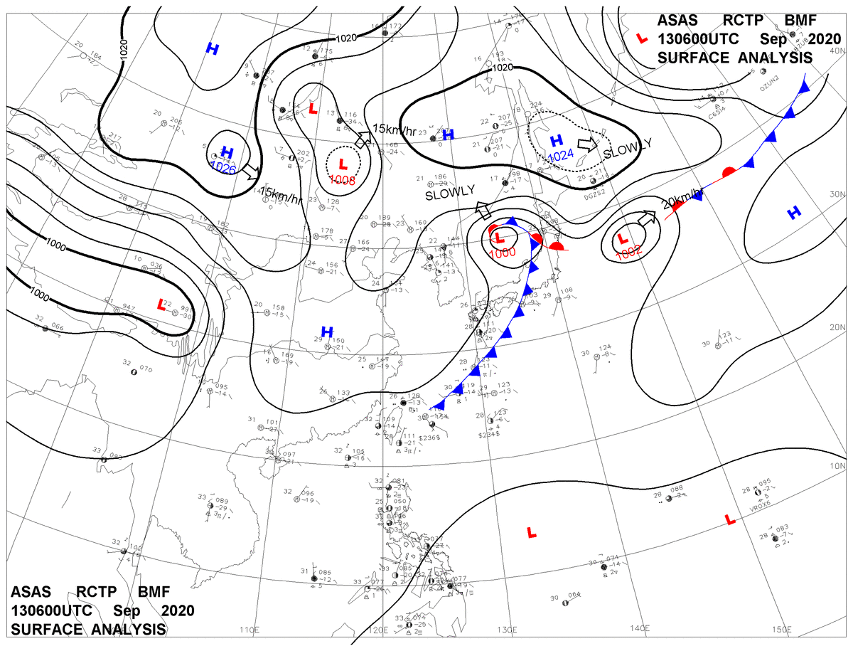 2020/09/13 06z sfcmap 天氣圖