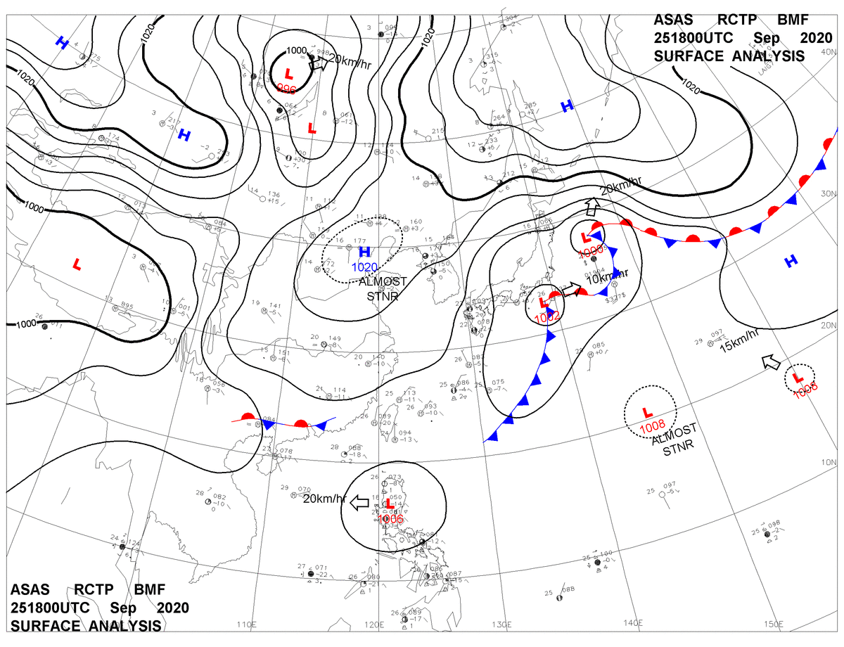 2020/09/25 18z sfcmap 天氣圖