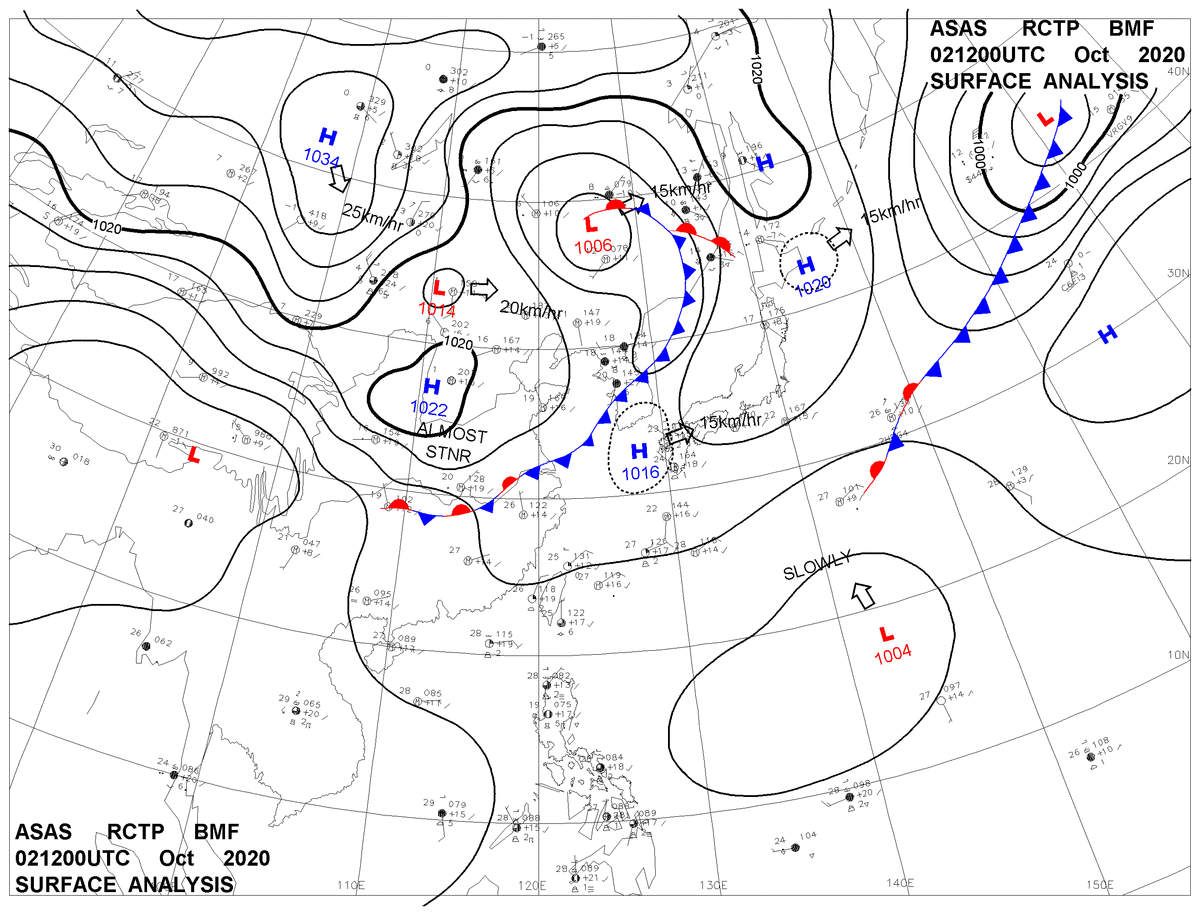 2020/10/02 12z sfcmap 天氣圖