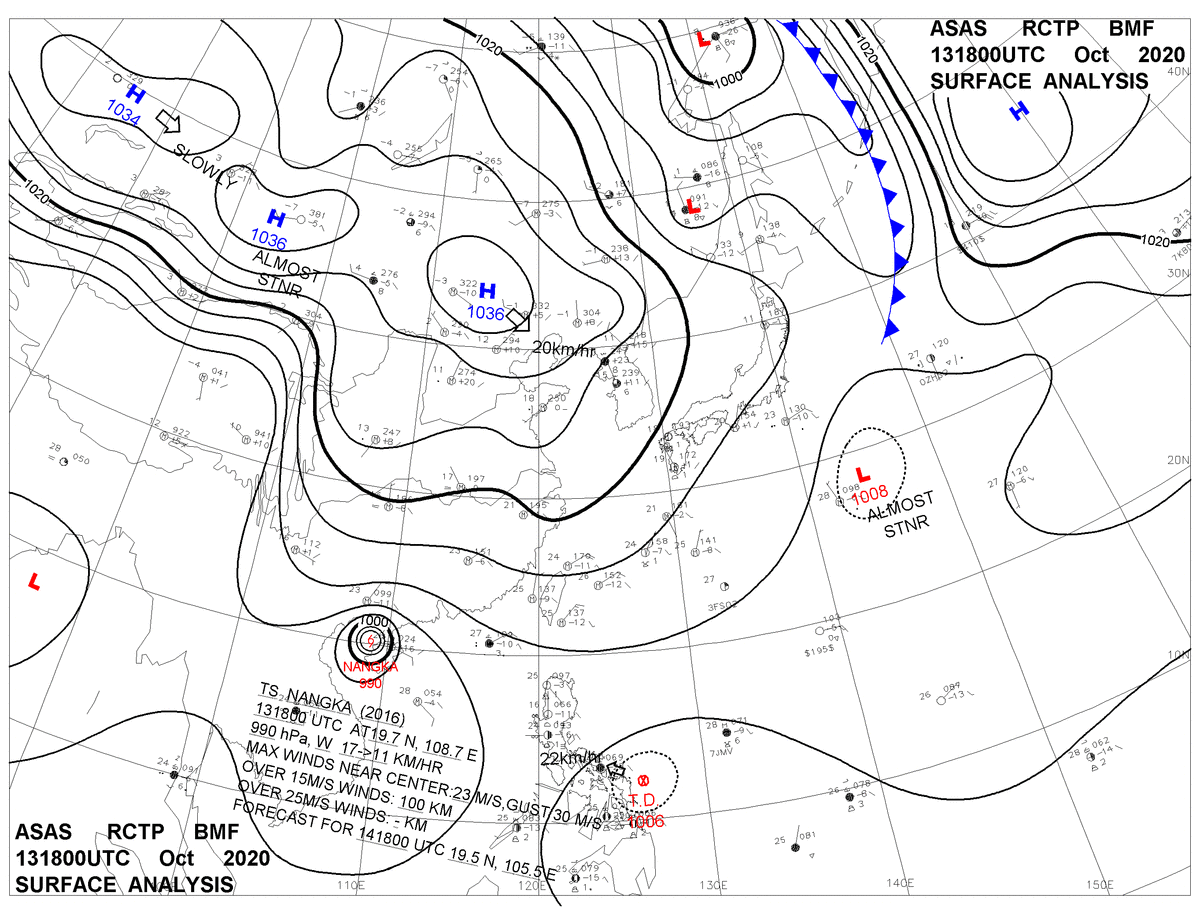 2020/10/13 18z sfcmap 天氣圖