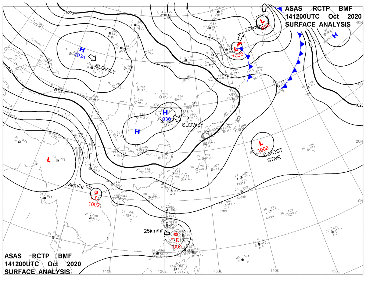 2020/10/14 12z sfcmap 天氣圖