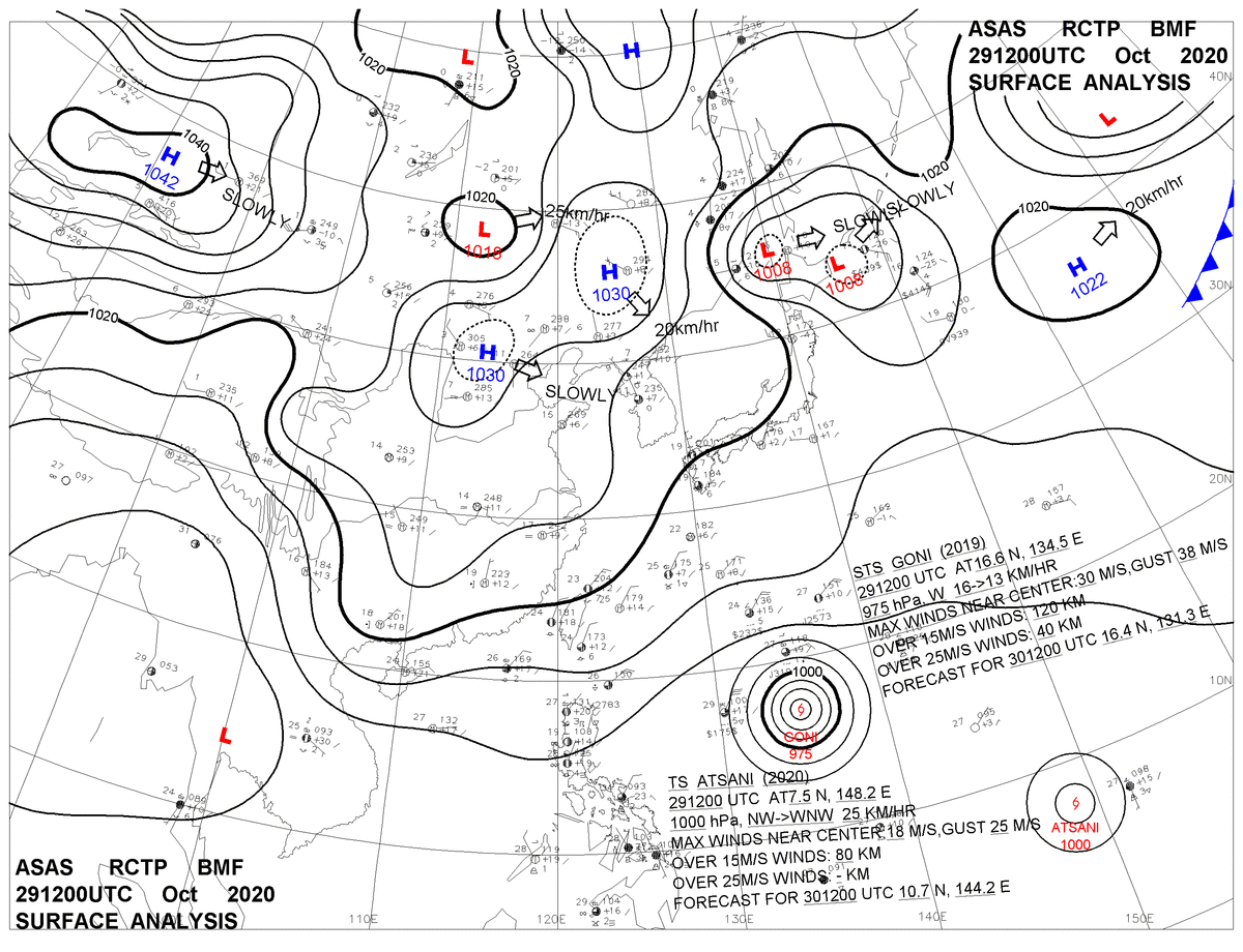 2020/10/29 12z sfcmap 天氣圖