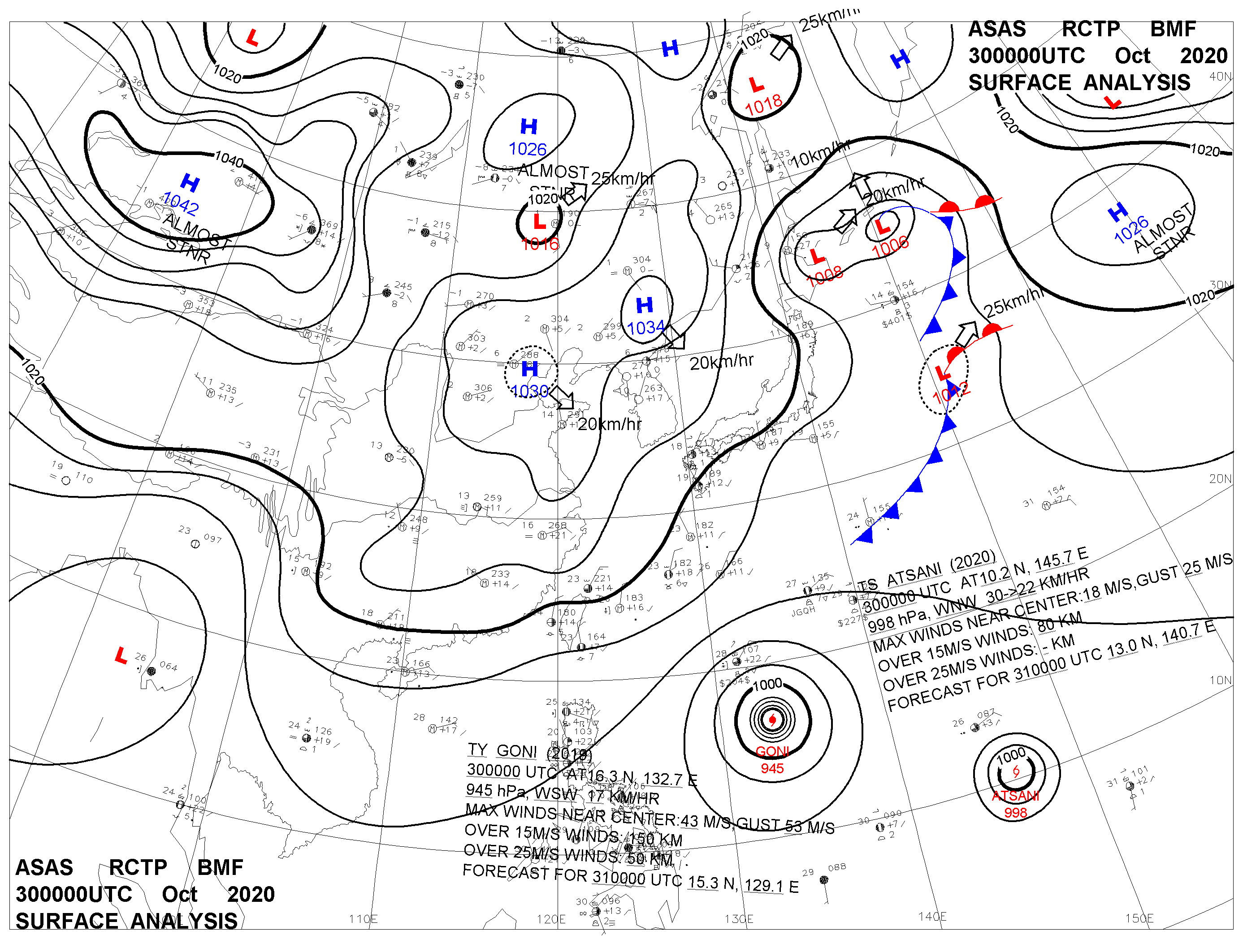 2020/10/30 00z sfcmap 天氣圖