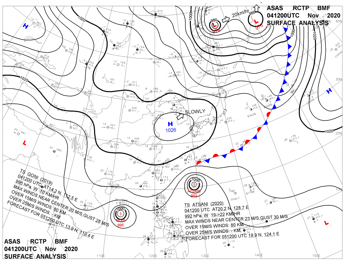 2020/11/04 12z sfcmap 天氣圖