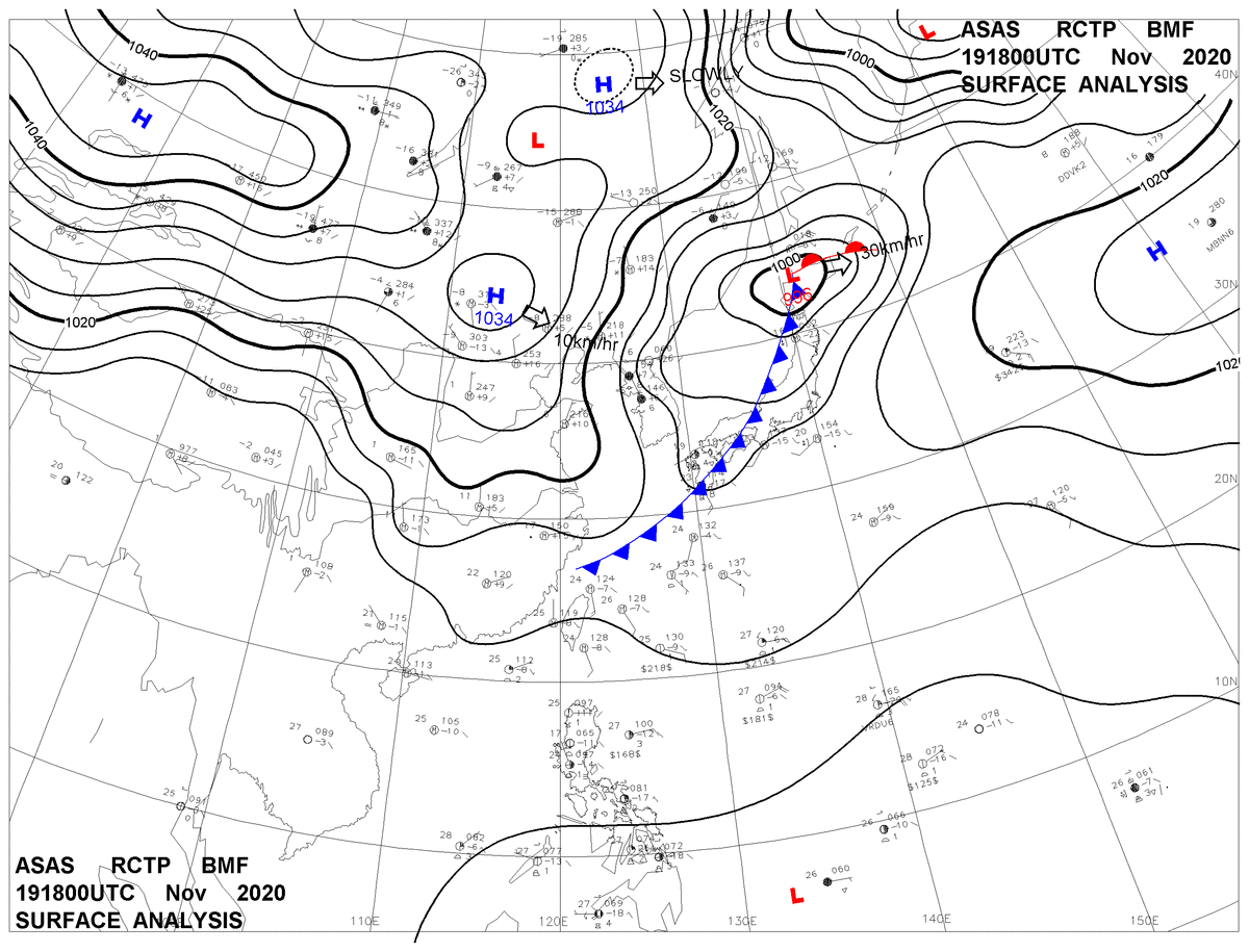 2020/11/19 18z sfcmap 天氣圖