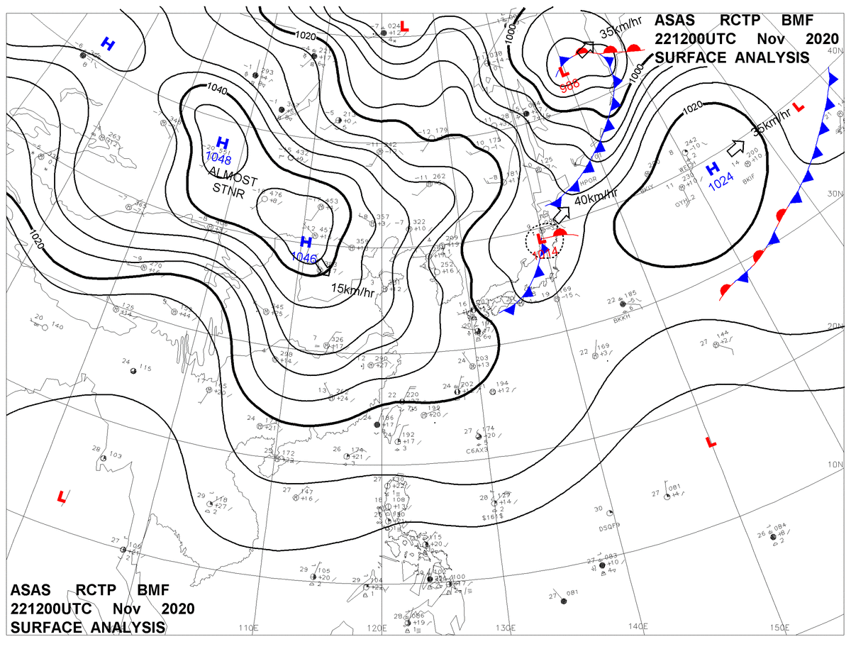 2020/11/22 12z sfcmap 天氣圖