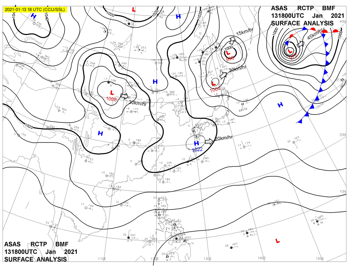 2021/01/13 18z sfcmap 天氣圖