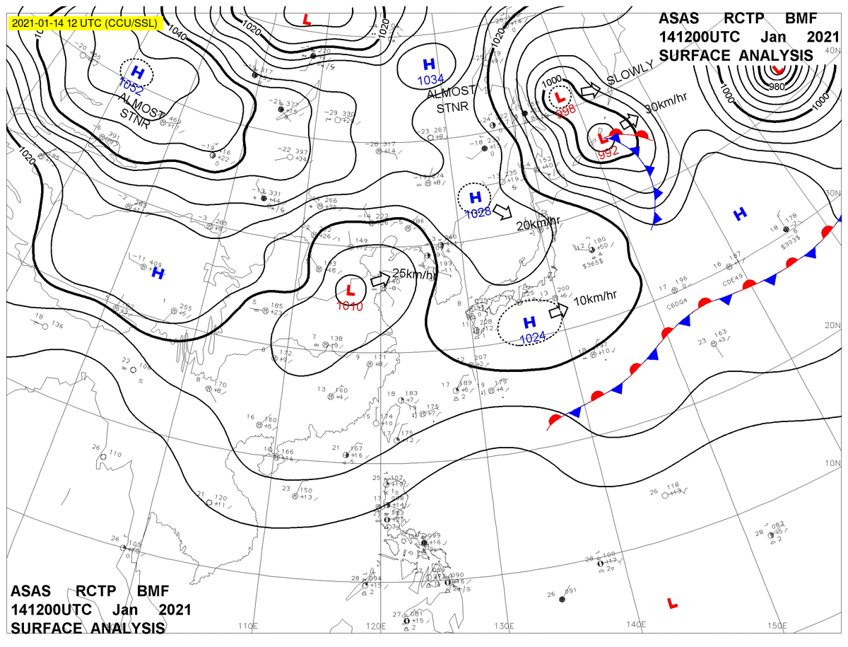 2021/01/14 12z sfcmap 天氣圖