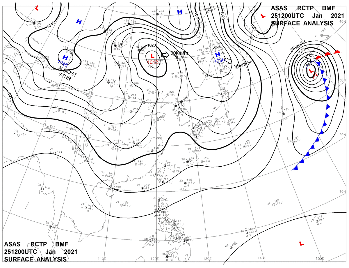 2021/01/25 12z sfcmap 天氣圖