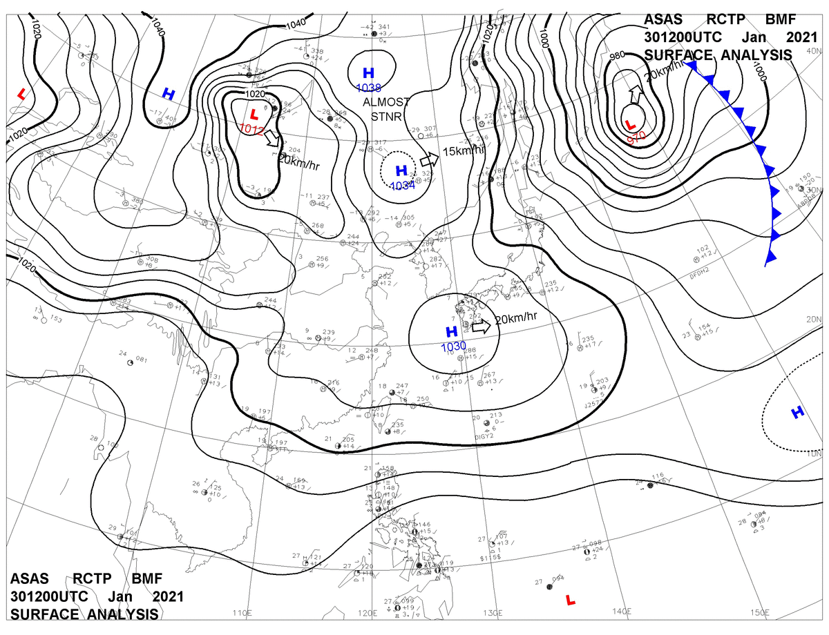 2021/01/30 12z sfcmap 天氣圖