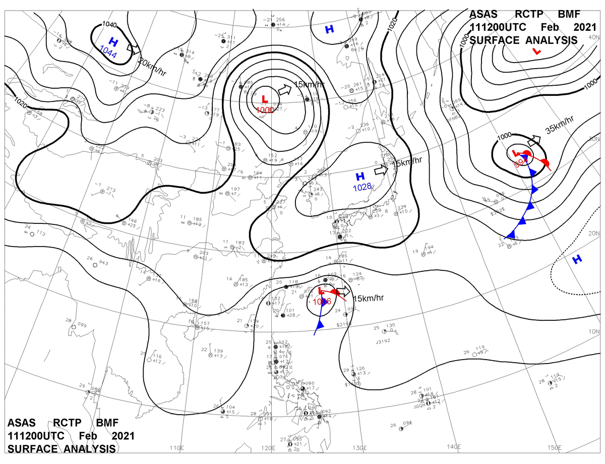 2021/02/11 12z sfcmap 天氣圖