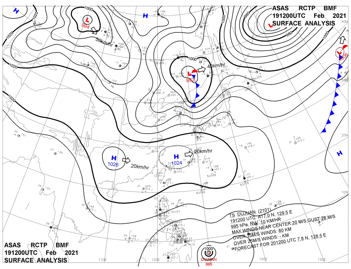 2021/02/19 12z sfcmap 天氣圖