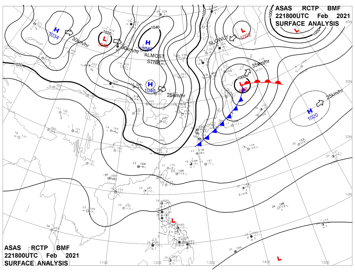 2021/02/22 18z sfcmap 天氣圖