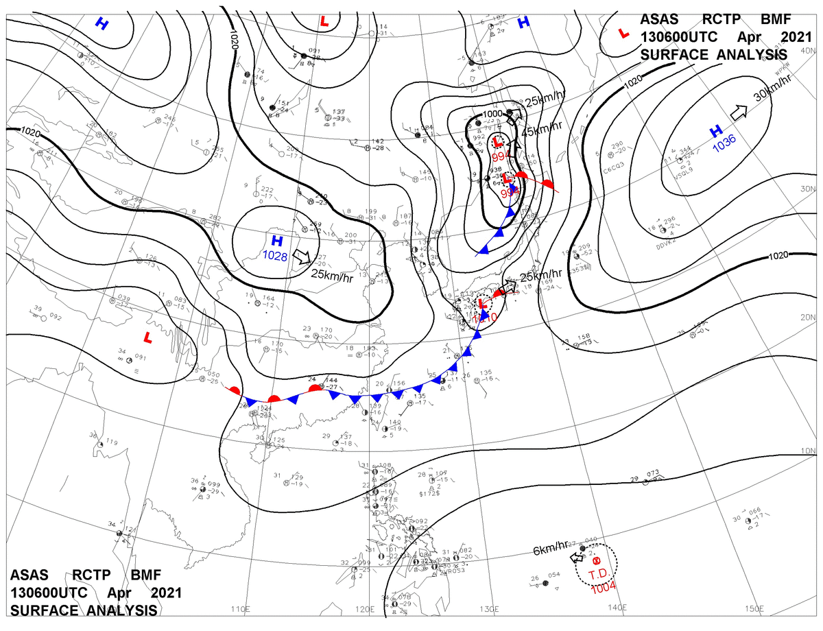 2021/04/13 06z sfcmap 天氣圖