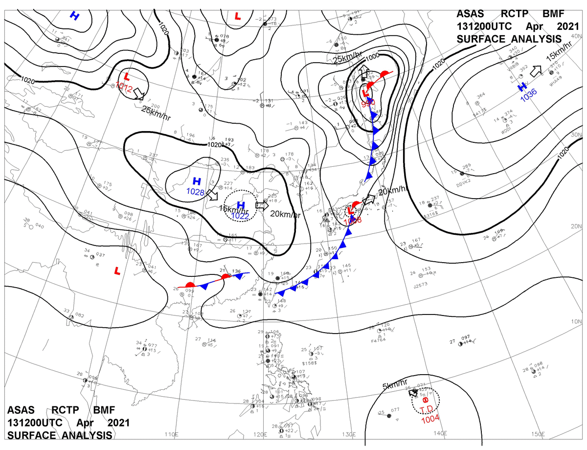 2021/04/13 12z sfcmap 天氣圖