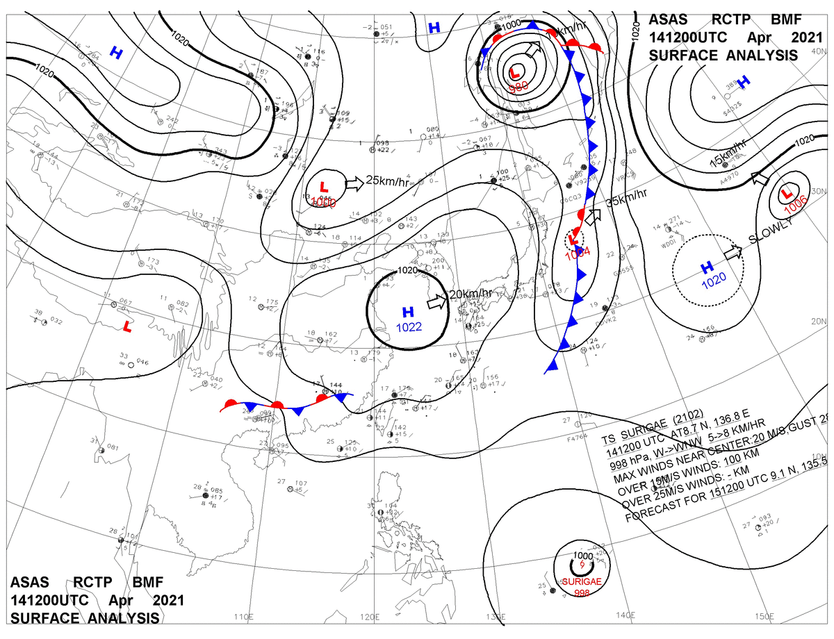 2021/04/14 12z sfcmap 天氣圖