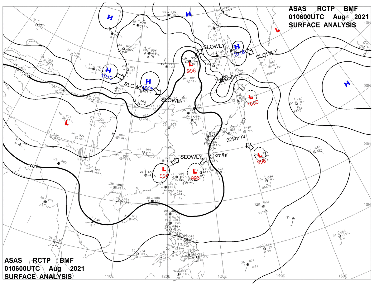 2021/08/01 06z sfcmap 天氣圖