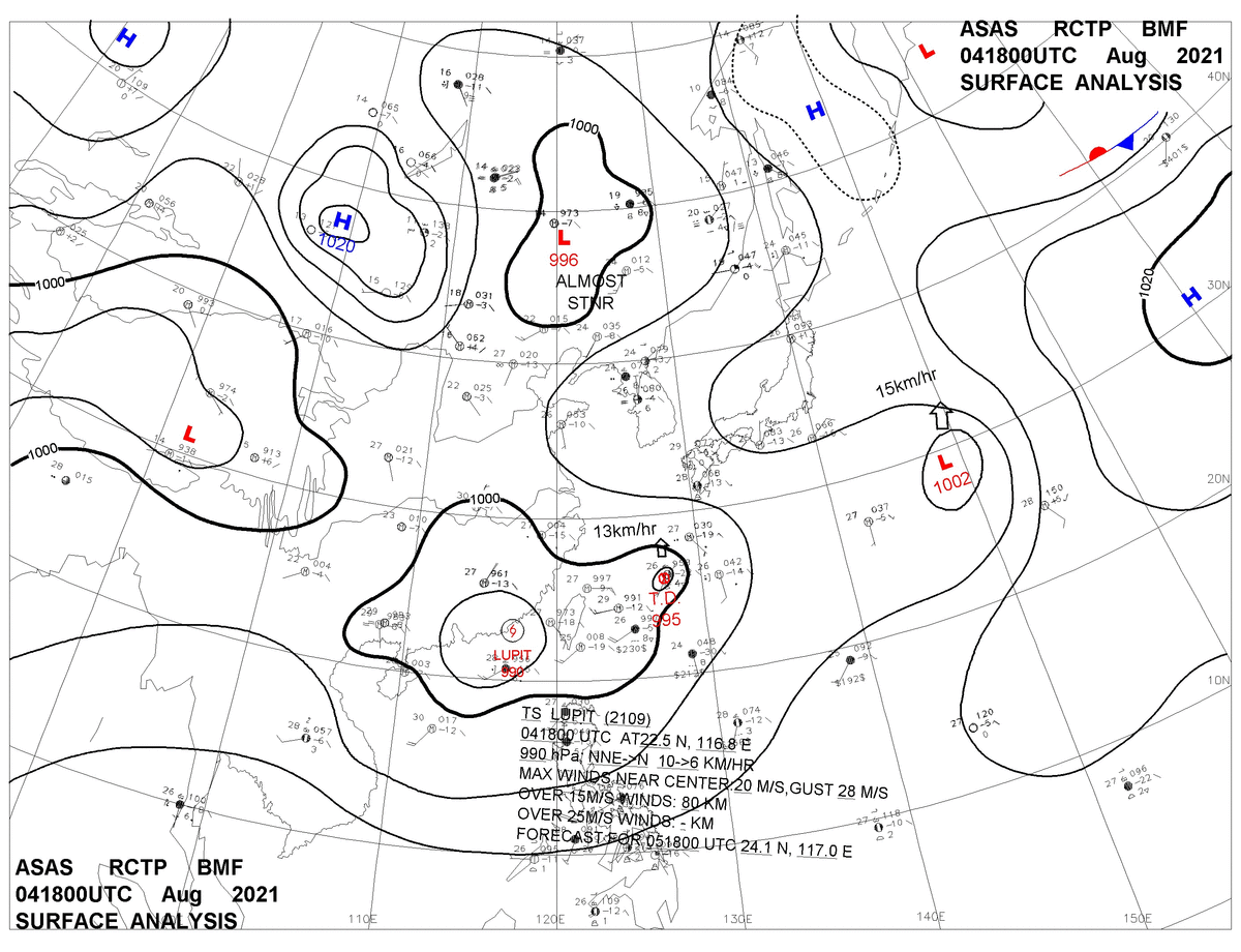 2021/08/04 18z sfcmap 天氣圖