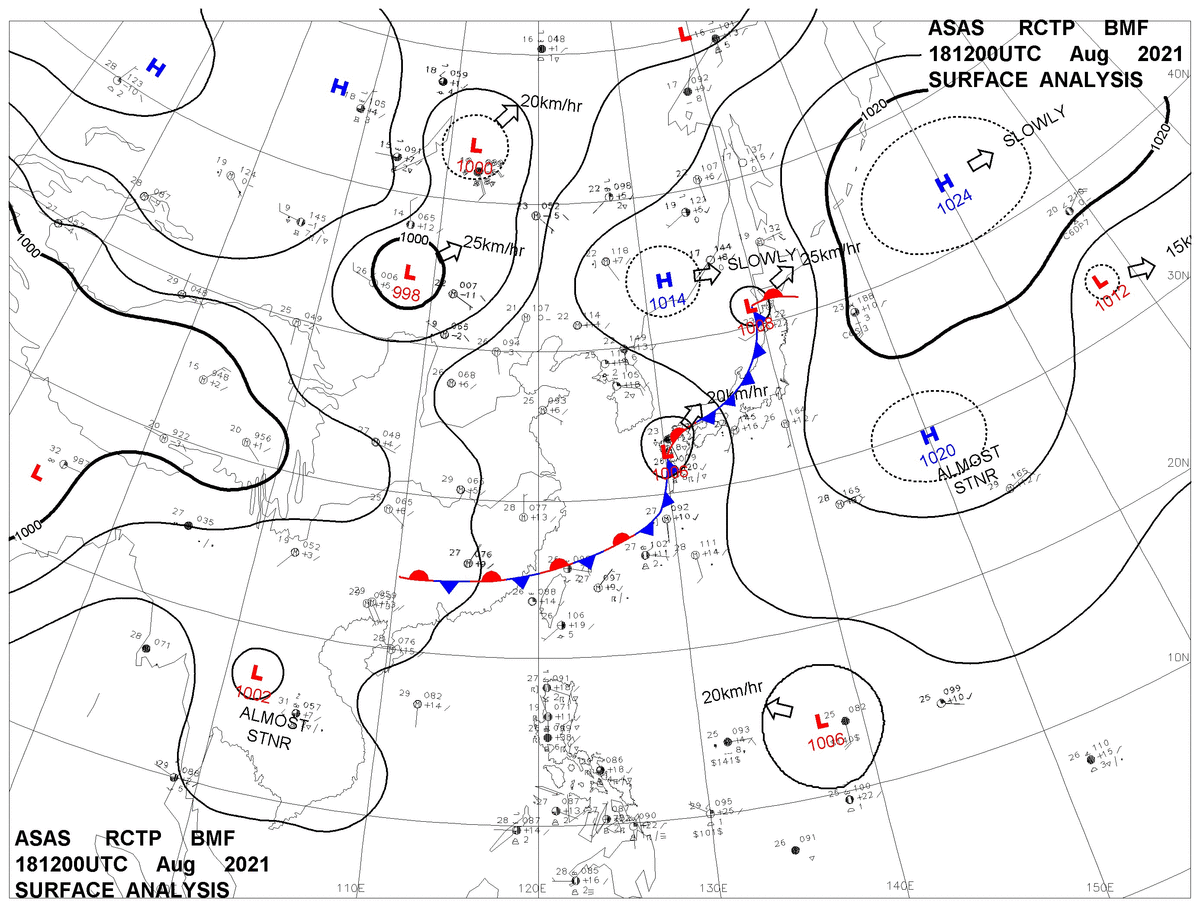 2021/08/18 12z sfcmap 天氣圖