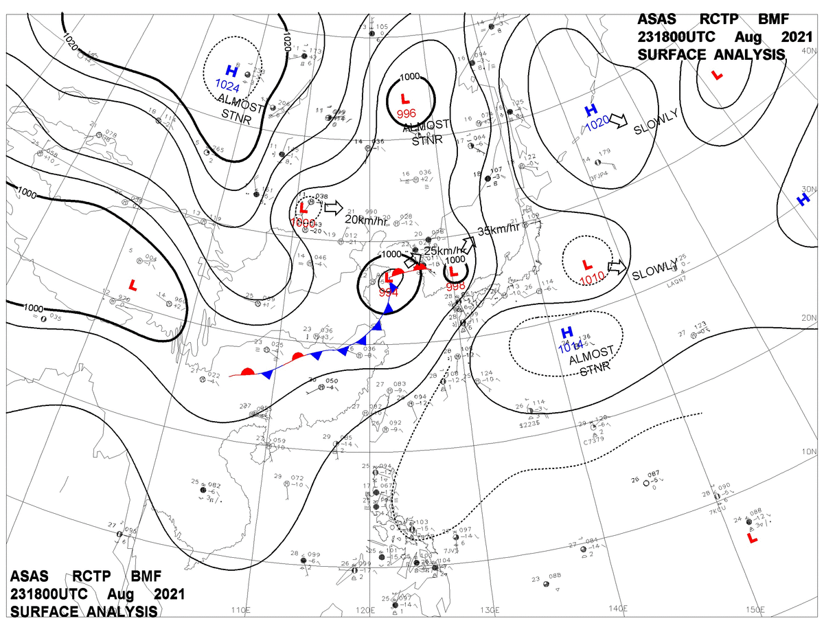 2021/08/23 18z sfcmap 天氣圖