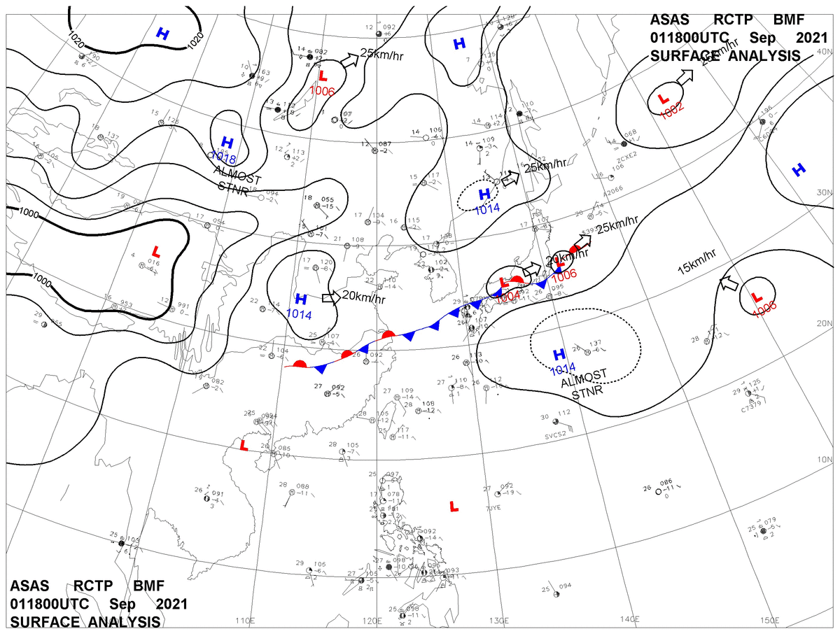 2021/09/01 18z sfcmap 天氣圖