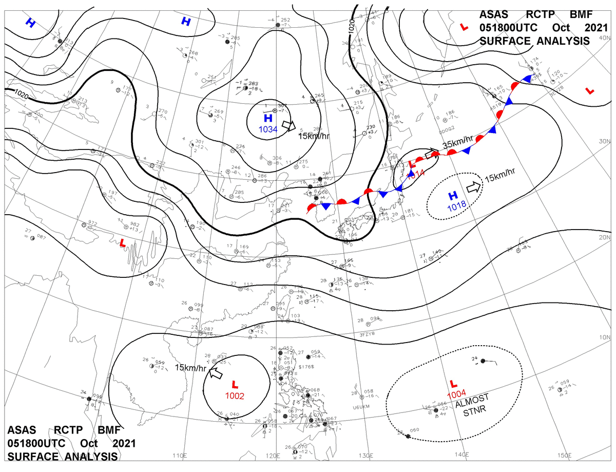 2021/10/05 18z sfcmap 天氣圖
