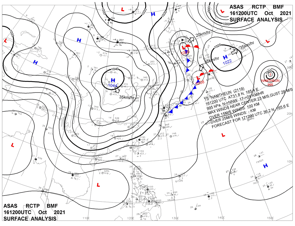 2021/10/16 12z sfcmap 天氣圖